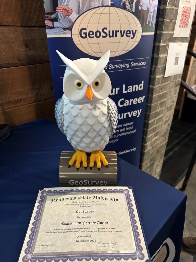 We are very honored to receive Kennesaw State University’s Community Partner Award presented at their Geospatial Sciences Night. Congratulations to Carlos Acevedo-Gonzalez and Nathan Nightingale for earning the 2025 GeoSurvey Endowed Scholarship!